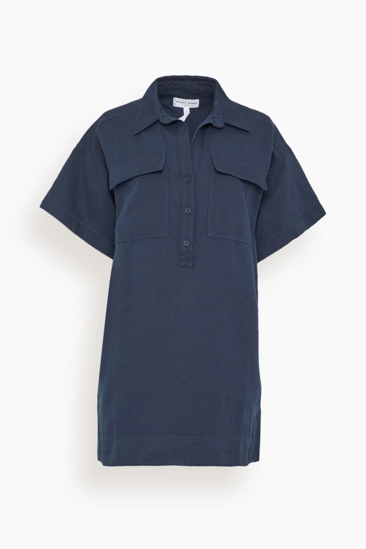 The Apiece Apart Stefana Shift Dress in Navy is an easy mini dress designed to dress up or down, all season long. Crafted from a comfortable blend of cotton and linen. - 60% Organic Cotton 40% Linen - Made in India - Dry clean recommended or machine wash cold on gentle cycle, lay flat to dry, low iron - Measurements from size S. Length: 34" - Fits true to size. Select your usual size