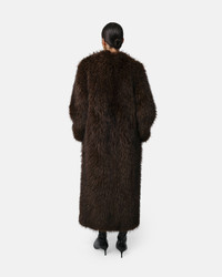 Tipped fox faux fur maxi coat with SANS leather metal buckles. DETAILS & FIT Oversized fit. We recommend taking your normal size or sizing down for a closer fit. Model is 5'8" wearing a size small. Length: 50 inches SANS Leather buckle closure. MATERIALS Recycled tipped fox faux fur with 100% recycled lining. GRS certified materials. Body: 80% polyester, 20% recycled polyester. To learn more about our approach to materials, click here.