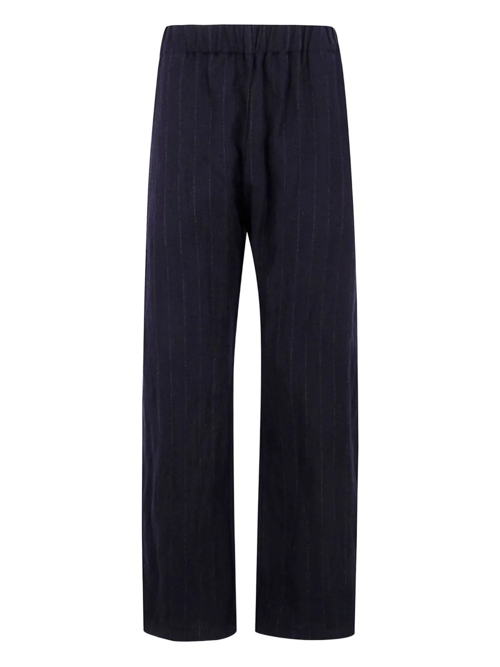 pinstripe trousers Highlights - Blue - Pinstripe pattern - Elasticated waistband - Wool Imported Composition Lining: Wool 100% Washing instructions Read Manufacturer Guidelines