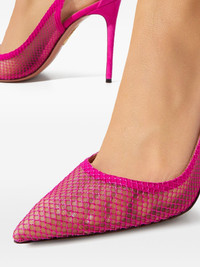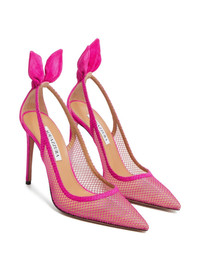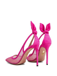 105mm bow-detail pumps Highlights - Pink - Bow detail - Stiletto heel - Pointed toe Made in Italy Composition Outer: Suede 100%, Mesh 100% Lining: Calf Leather 100% Sole: Calf Leather 100% SIZE & FIT Measurement HEEL 41.33 in(105 cm)