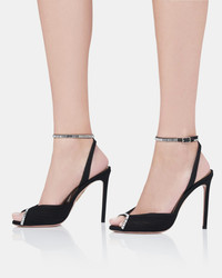 Designed for sparkling on the dancefloor, these Be Mine Sandals are crafted from panels of black sheer chiffon mesh and grosgrain with delicate crystals framing the open toes and ankle straps. Fitted with lightly cushioned leather insoles for comfort, the 105 mm stiletto heels take every look to striking new heights. Adjustable buckle closure Stiletto heel Crystal embellishments Padded leather insole Signature logo detailing Product: BMNHIGS0-CGR-000 Made in: Italy