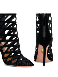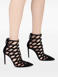 105mm Romance boots Highlights - Black - Velvet - Interwoven design - Multi-way straps - Cut-out detailing - Gold-tone logo plaque - Signature pineapple motif - Pointed toe - Rear zip fastening - Ankle-length - Branded leather insole - High stiletto heel - Leather sole Made in Italy Composition Outer: Velvet 100% Lining: Calf Leather 100% Sole: Calf Leather 100%