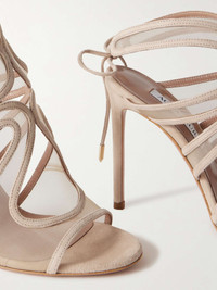 EDITORS'NOTES Made from suede, Aquazzura's 'Spirit' sandals have a foot-framing wavy silhouette reinforced with sheer mesh panels. They're set on 105mm heels and have adjustable ankle ties for a secure fit. SIZE & FIT - Fits true to size, take your normal size - Italian sizing DETAILS & CARE - Heel measures approximately 105mm/ 4 inches - Beige suede (Goat) and mesh - Ties at ankle