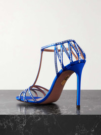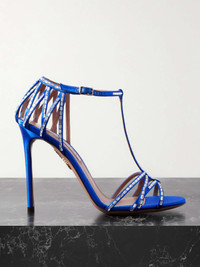 Between the royal-blue shade and dazzling crystal-encrusted straps, Aquazzura's 'Forever More' sandals are truly fit for a fairytale. They've been crafted in Italy from lustrous satin and rest on slim stiletto heels that offer 110mm of lift. Wear them to your next event with a midi dress or gown. Size & Fit - Fits true to size, take your normal size - Italian sizing Details & Care - Heel measures approximately 110mm/ 4.5 inches - Royal-blue satin - Buckle-fastening ankle strap