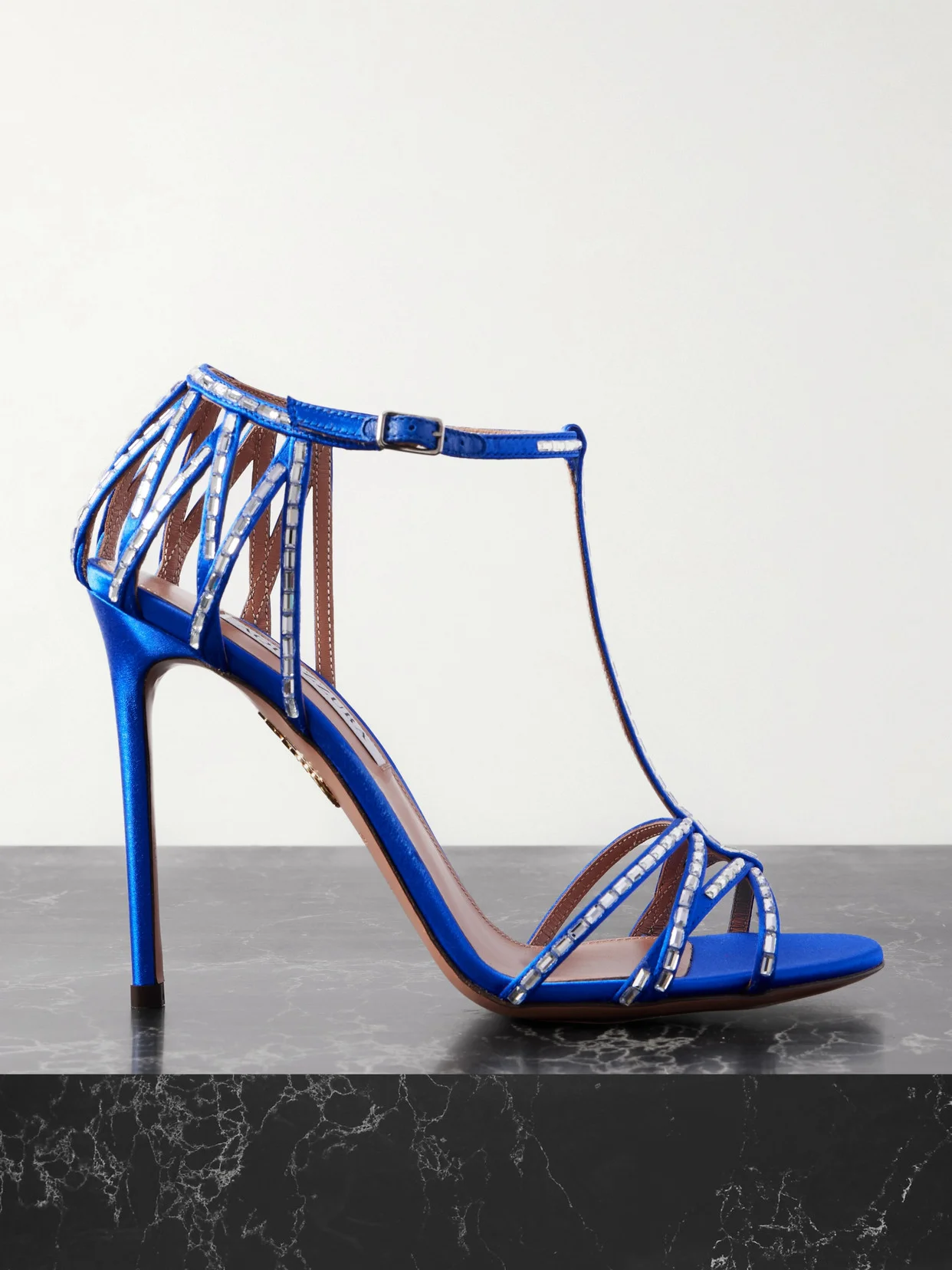 Between the royal-blue shade and dazzling crystal-encrusted straps, Aquazzura's 'Forever More' sandals are truly fit for a fairytale. They've been crafted in Italy from lustrous satin and rest on slim stiletto heels that offer 110mm of lift. Wear them to your next event with a midi dress or gown.