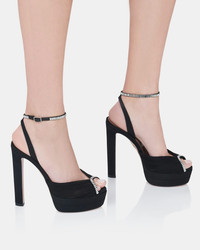 Shimmering crystal details, sheer textures and towering 130 mm block heels, balanced on sturdy platforms, come together in these showstopping Be Mine Plateau Sandals. Theyre crafted from black chiffon mesh and grosgrain with lightly cushioned leather insoles youll be thankful for after a long night of dancing. Adjustable buckle closure Block heel Crystal embellishments Padded leather insole Signature logo detailing Product: BMNHIGB0-CGR-000 Made in: Italy