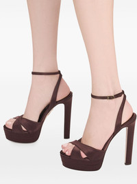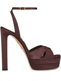 130mm Divine Plateau sandals Highlights - Brown - Leather - Buckle fastening - High heel - Platform sole - Criss-cross strap detail Made in Italy Composition Sole: Leather 100% Outer: Satin 100% Lining: Satin 100% SIZE & FIT Measurement HEEL 5.11 in(13 cm)