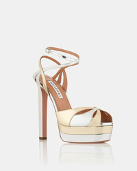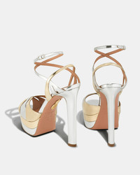 Not for the faint of heart: our Moves Plateau Sandals make a bold statement with their towering 130 mm block heels, balanced on chunky soles. Finished with supportive ankle straps, this precious pair is crafted from a mix of gold and silver leather – a playful way to work the mixed-metal trend in your rotation. Adjustable buckle closure Block heel Padded leather insole Signature logo detailing Product: MVSHIGB0-SSY-SSG Made in: Italy