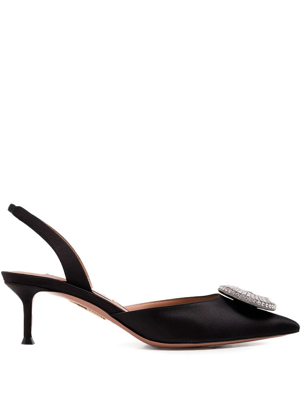 50mm crystal-embellished sling pumps Highlights Made in Italy Composition Lining: Calf Leather 100% Outer: Satin 100% Sole: Calf Leather 100%