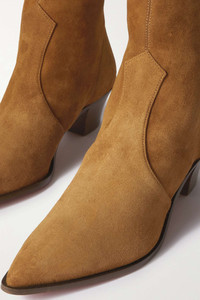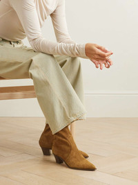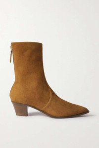 EDITORS'NOTES Aquazzura's 'Brunswick' ankle boots are designed with a slight Western tinge. Set on manageable 45mm Cuban heels, they're made from panels of velvety suede with tonal topstitching and sleek pointed toes. Wear yours with maxi dresses or cropped jeans. SIZE & FIT - Fits true to size, take your normal size - Italian sizing DETAILS & CARE - Heel measures approximately 45mm/ 2 inches - Tan suede (Goat) - Zip fastening along back - Designer color: Cognac