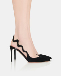 Effortlessly timeless with a playful twist, our Artiste Sling Pump reimagines the classic slingback silhouette with its undulating strap, subtly supported by clear PVC inserts. Made from velvety black suede that pairs seamlessly with any wardrobe, it’s finished with a pointed toe and sleek stiletto heel for refined elegance. Slingback strap Mid heel Padded leather insole Signature logo detailing Product: ARTMIDL1-SPV-000 Made in: ITALY