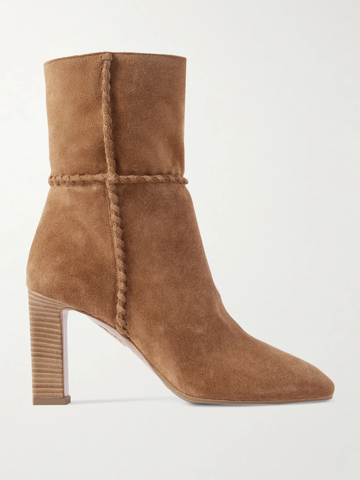 Aquazzura's 'Indy' ankle boots have tonal whipstitched details that outline the sleek profile. They've been expertly made in Italy from suede with almond toes and 85mm block heels. Show yours off with cropped hems and mini skirts.
