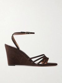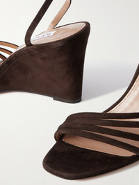 Aquazzura's wedge sandals are the latest addition to the strappy 'Latour' range. They've been crafted in Italy from suede and offer 85mm of lift. Check out our edit for flat versions, too. Size & Fit - Fits true to size, take your normal size - Italian sizing Details & Care - Heel measures approximately 85mm/ 3.5 inches - Chocolate suede (Goat) - Buckle fastening ankle strap