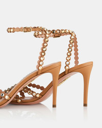 Our Tequila Sandals evoke timeless glamour for your evening ensembles. Crafted in Italy from supple nappa leather in a creamy light-caramel hue, this open-toed pair features gleaming gems across its slender straps and sits upon a slim stiletto heel. Wear yours with a little black dress. Covered stiletto heel Leather lining Padded leather insole Leather sole with gold- dipped pineapple logo Product: TQLMIDS0-NAP-LTC Made in: Italy