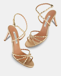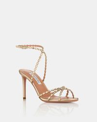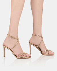 The perfect complement to a party dress – these Love Struck Sandals are crafted from thin strips of metallic leather in shades of light copper, dotted with light-catching crystals for a mesmerising effect. They have adjustable ankle straps and 85 mm heels, so you can dance the night away. Adjustable buckle closure Mid heel Crystal embellishments Padded leather insole Signature logo detailing Product: LSKMIDS0-NPL-LCO Made in: Italy