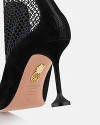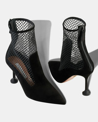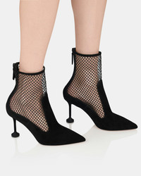 Introduce new textures to your wardrobe with these Dawn Mesh Booties, expertly made from a combination of black suede and see-through panels. They rest on gently flared 85 mm heels and fasten with back zippers for a streamlined look. Back zipper Mid heel Padded leather insole Signature logo detailing Product: DAWMIDB0-NED-000 Made in: Italy