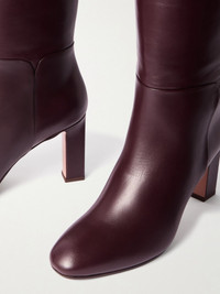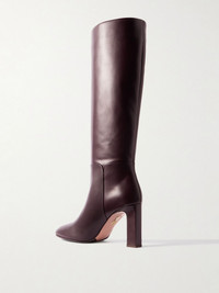 Aquazzura's 'Sellier' boots have been handmade in Italy from smooth plum leather. Designed in a classic knee length, they have almond toes and rest on block heels that offer 85mm of lift. Wear yours with everything from jeans to sweater dresses. Size & Fit - Fits true to size, take your normal size - Italian sizing Details & Care - Heel measures approximately 85mm/ 3.5 inches - Plum leather (Calf) - Pull on
