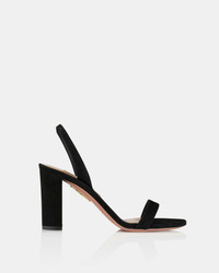 Our coveted So Nude silhouette is reimagined on a block heel. Italian-crafted from velvety suede in rich black, the minimal design is fashioned with a slender strap that wraps the toes and a comfortable slingback that keeps the foot in place. The pair is finished on a mid block heel to take you from office to evening, effortlessly. Covered block mid heel Open toe Slingback strap Leather insole with 'Aquazzura' label Product: SNBMIDS0-SUE-000 Made in: Italy