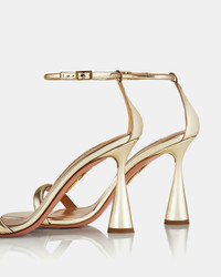With their clean, geometric appeal and high-shine metallic finish, our Hot Sandals epitomise modern glamour. This Soft Gold pair is crafted from mirror-effect leather and features ultra-slim straps that keep them securely in place. The sculptural 95 mm heel is perfect for any kind of ceremony. Adjustable buckle closure High heel Padded leather insole Signature logo detailing Product: HOTHIGS0-SSY-SOG Made in: Italy