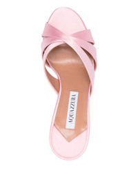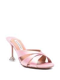 95mm Kiss Me Quick crossover mules Highlights - Light pink - Crossover straps - Stiletto heel - Jewel-embellished heel - Open toe Made in Italy Composition Sole: Calf Leather 100% Lining: Calf Leather 100%, Satin 100% Outer: Satin 100% SIZE & FIT Measurement HEEL 3.74 in(9.5 cm)