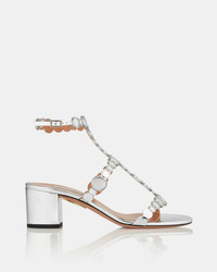 Aquazzura's collections are filled with staples that'll work day and night. Resting on 50 mm block heels, these Afterglow Sandals are crafted from silver leather with a mirrored effect, accentuated with light-catching discs for an all-over metallic finish. Style yours with denim and statement dresses alike. Adjustable buckle closure Low heel Padded leather insole Signature logo detailing Product: AGWMIDS0-SSY-CCC Made in: ITALY