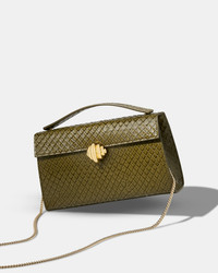 With its vintage-inspired silhouette and elegant python-effect texture, the Alex Bag is both timeless and distinctive. Crafted by skilled artisans in Italy and accented with light gold-toned hardware, it features a safari-green hue that's perfect with warm neutrals or soft pastels. Push clasp fastening Detachable shoulder strap Signature logo detailing Aquamarine dust bag Product: AEXSHBS0-PYH-SGG Made in: ITALY