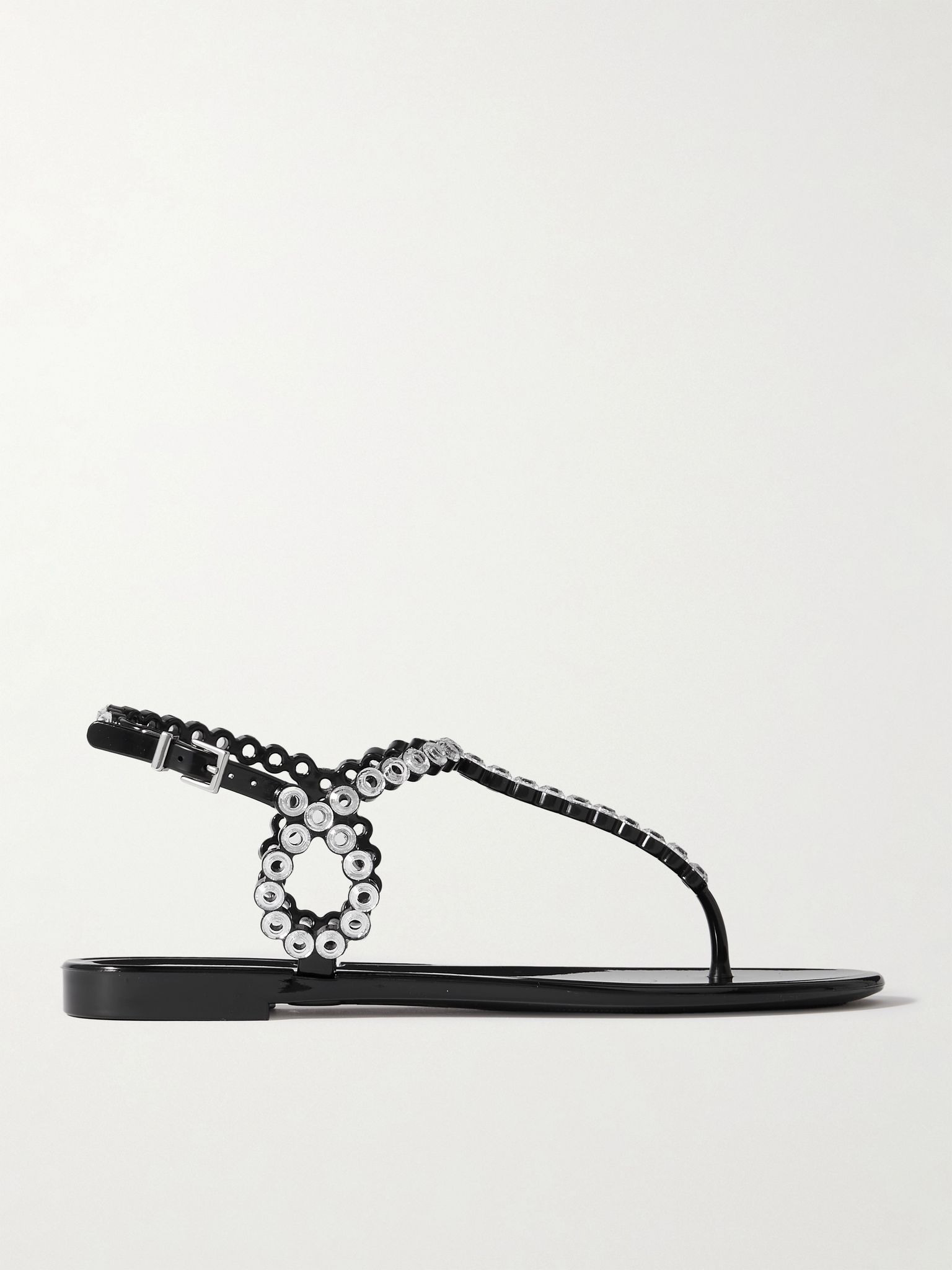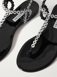 Aquazzura's 'Almost Bare' sandals are the ultimate accessory for warm-weather vacations. They're made from flexible PVC and have swirling straps embellished with crystals, so they suit poolside lunches and elegant dinners alike. Size & Fit - Fits true to size, take your normal size - Only available in full sizes, go up to the nearest whole size if you take a half size - Italian sizing Details & Care - Slight heel - Black PVC - Buckle-fastening ankle strap