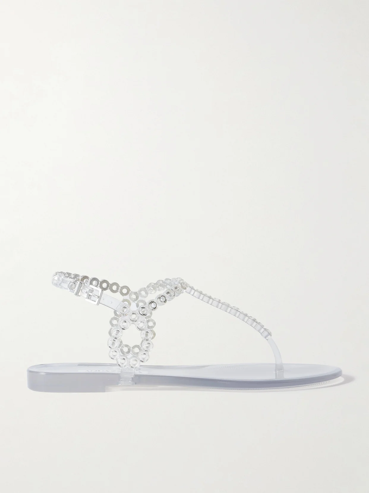 Aquazzura's 'Almost Bare' sandals are the ultimate accessory for warm-weather vacations. They're made from flexible PVC and have swirling straps embellished with crystals, so they suit poolside lunches and elegant dinners alike.