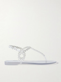Aquazzura's 'Almost Bare' sandals are the ultimate accessory for warm-weather vacations. They're made from flexible PVC and have swirling straps embellished with crystals, so they suit poolside lunches and elegant dinners alike. Size & Fit - Fits true to size, take your normal size - Only available in full sizes, go up to the nearest whole size if you take a half size - Italian sizing Details & Care - Slight heel - Clear PVC - Buckle-fastening ankle strap