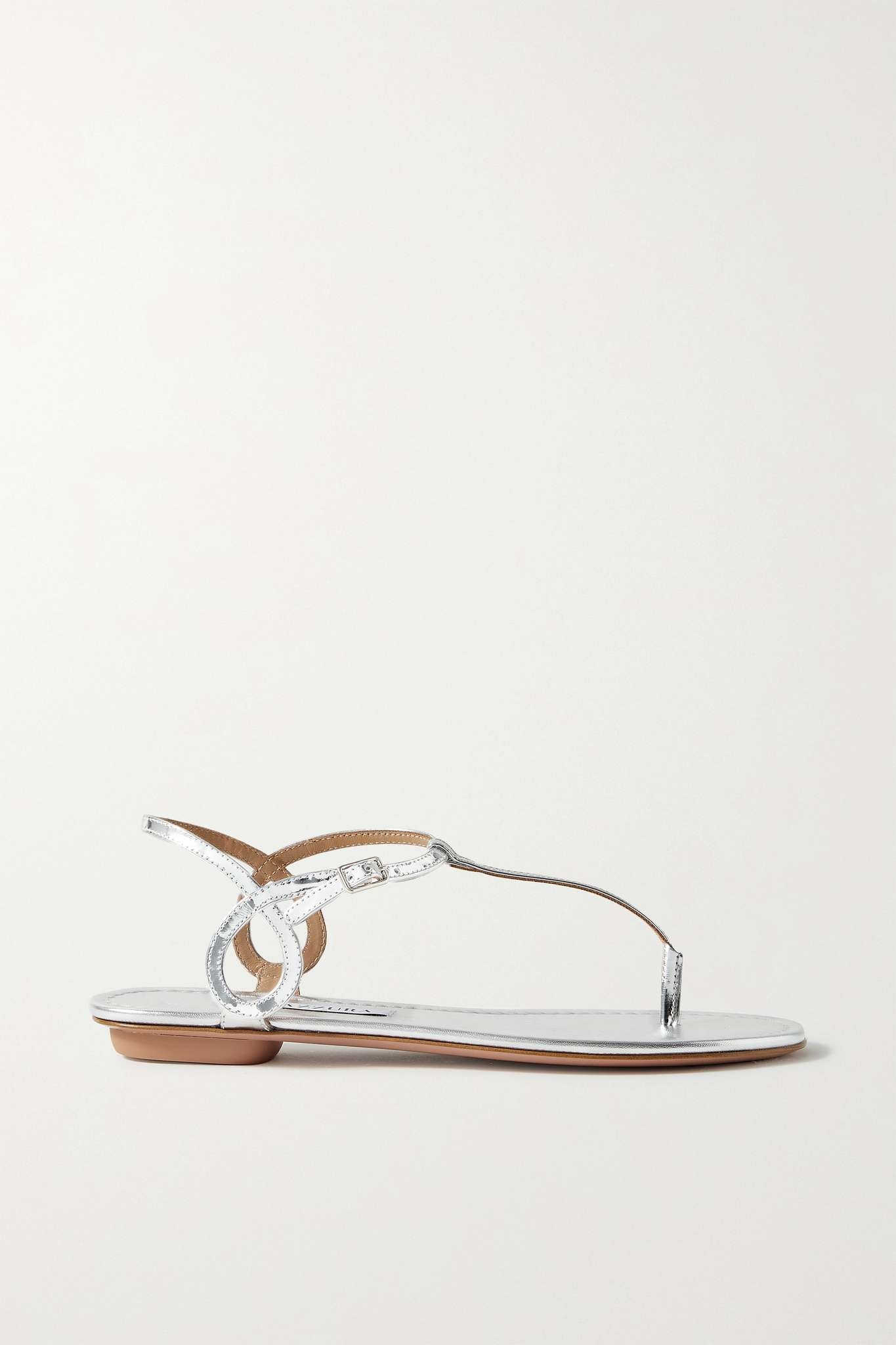 EDITORS'NOTES Aquazzura's 'Almost Bare' sandals are crafted from silver leather and have slender T-bar straps. Wear yours with a fresh red pedicure SIZE & FIT - Fits small to size, take a half size larger than normal - Italian sizing DETAILS & CARE - Slight heel - Silver leather - Buckle fastening ankle strap