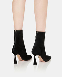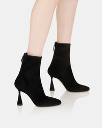 Our Amore Booties will foster your belief in love at first sight. Crafted in Italy from black suede, the elegant silhouette rests on a sculptural heel that adds instant intrigue to any look. The unique design is equal parts versatile and impactful – the ultimate wardrobe staple for transitional dressing. Back zipper Pointed toe High heel Padded leather insole Signature logo detailing Product: AREHIGB0-SUE-000 Made in: Italy