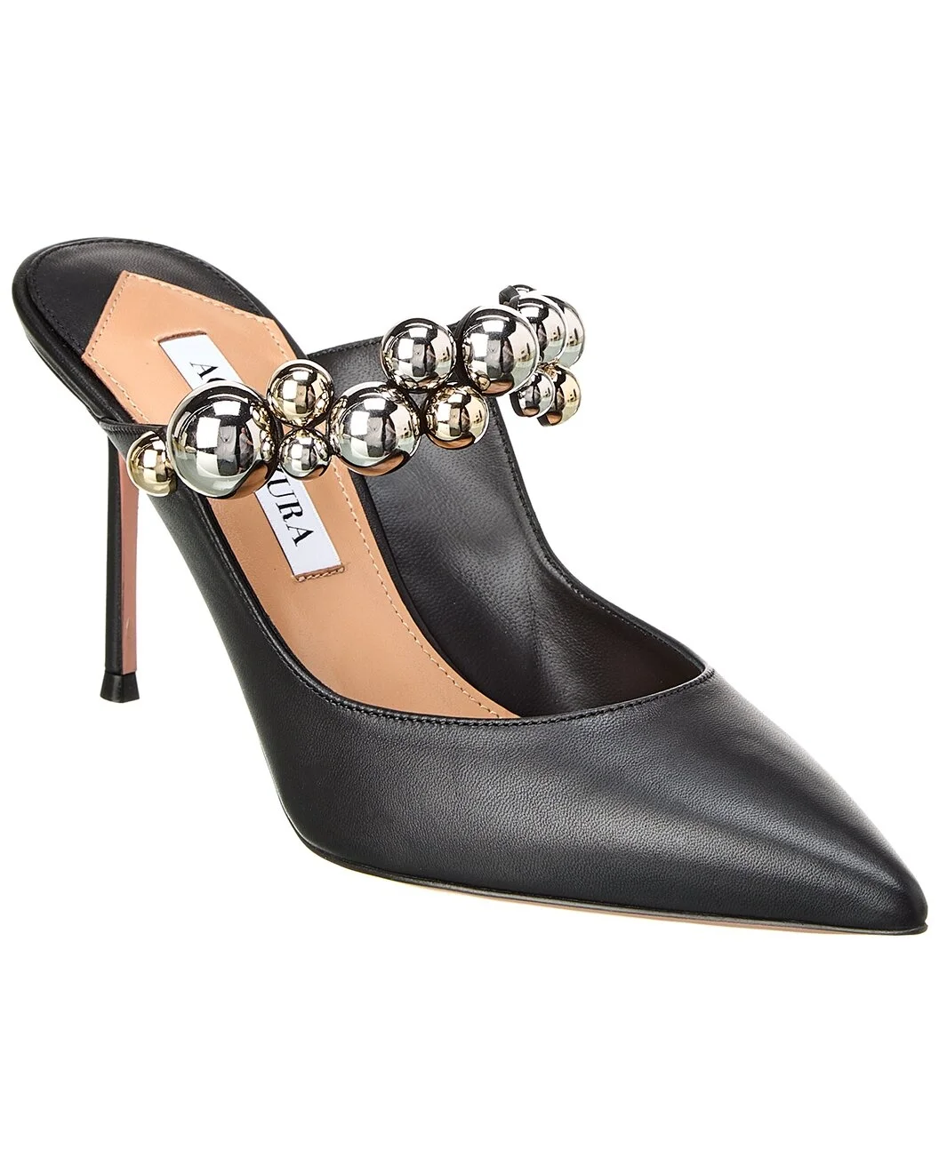 - About the brand: Sophisticated, sexy, & fun. - Please note: Size selections are European. For US conversions, please reference size chart. - Made in Italy - Bubbles 75 Leather Mule in black leather and silver-tone hardware with metal bubble studs - Lightly padded leather insole - Smooth leather sole - 3.5in heel - Please note: All measurements are approximate and were taken from a size 37; slight variations may occur. - Our products are 100% genuine. In some cases we purchase merchandise from trusted independent suppliers and not directly from the brand owner. In all cases we stand by the authenticity of every product sold on our site.