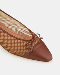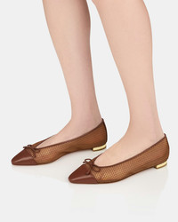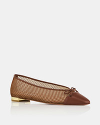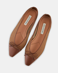 Consider these Gioia Mesh Flats every bit as iconic and timeless as Aquazzuras signature heels – with the added comfort quota. Theyre crafted from brown leather in rich shades of Tobacco and Cognac, paired with see-through panels, dainty bows at the toe caps and classically elegant 10 mm metallic heels. Wear yours with absolutely anything. Slip-on shoes Flat heel Padded leather insole Signature logo detailing Product: GIHFLAA0-MHN-TRC Made in: Italy