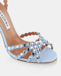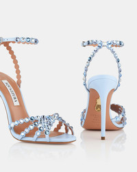 Elegant and glamorous, with a hint of playfulness – our Tequila Sandals are a fabulous option for your next event. This baby-blue pair is crafted from nappa leather and scattered with clear crystals for a jewel-like shine. The slim straps keep your foot securely in place, while the 105 mm stiletto heels guarantee all eyes are on you. Adjustable buckle closure Stiletto heel Padded leather insole Signature logo detailing Product: TQLHIGS0-NAP-BAL Made in: Italy