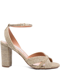 90mm Very Sundance ankle-strap sandals Highlights - Gold-tone - Calf leather - Ankle strap - Block heel - Crossed straps - Glitter fabric Made in Italy Composition Lining: Calf Leather 100% Outer: Fabric 100% Sole: Calf Leather 100% SIZE & FIT Measurement HEEL 3.54 in(9 cm)