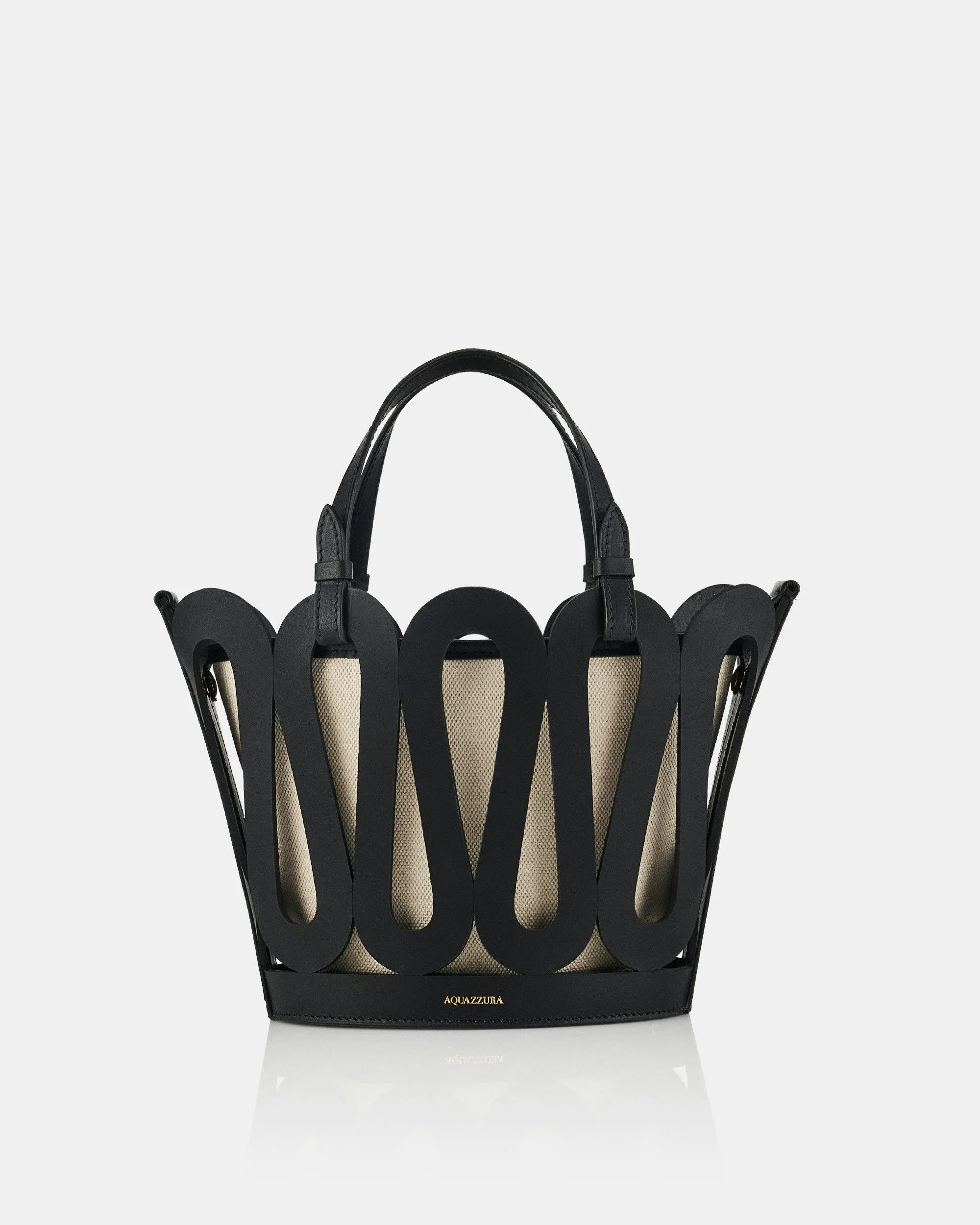 Inspired by classic bucket bags and reimagined as modernist sculpture, the Artiste Medium Tote is crafted from a combination of black leather and canvas for added depth and visual interest. Perfectly sized to house everyday essentials, this versatile piece can be carried in-hand for a polished look or worn over the shoulder for effortless ease. Leather tabs with magnetic snap closure Top handles Detachable shoulder strap Signature logo detailing Aquamarine dust bag Product: ARTTOTT0-CNC-NBG Made in: ITALY