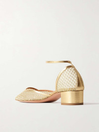 Aquazzura's footwear is handcrafted in Florence with meticulous precision, so each shoe is a "small work of art". These 'Asha' pumps are made from gold mesh and leather that accents the square vamps and block heels. Style them with dresses, tailoring and jeans alike. Size & Fit - Fits true to size, take your normal size - Italian sizing Details & Care - Heel measures approximately 35mm/ 1.5 inches - Gold metallic mesh and leather (Lamb) - Buckle-fastening ankle strap