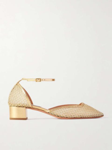 Asha 35 leather-trimmed metallic mesh pumps Gold