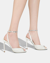 Designed to take you from the I do to the dancefloor, these Be Mine Sandals are crafted from panels of white sheer chiffon mesh and grosgrain with delicate crystals framing the open toes and ankle straps. Fitted with lightly cushioned leather insoles for comfort, the 105 mm stiletto heels take every look to striking new heights. Adjustable buckle closure Stiletto heel Crystal embellishments Padded leather insole Iconic light blue outsole Signature logo detailing Product: BMNHIGBR-CGR-FFF Made in: Italy
