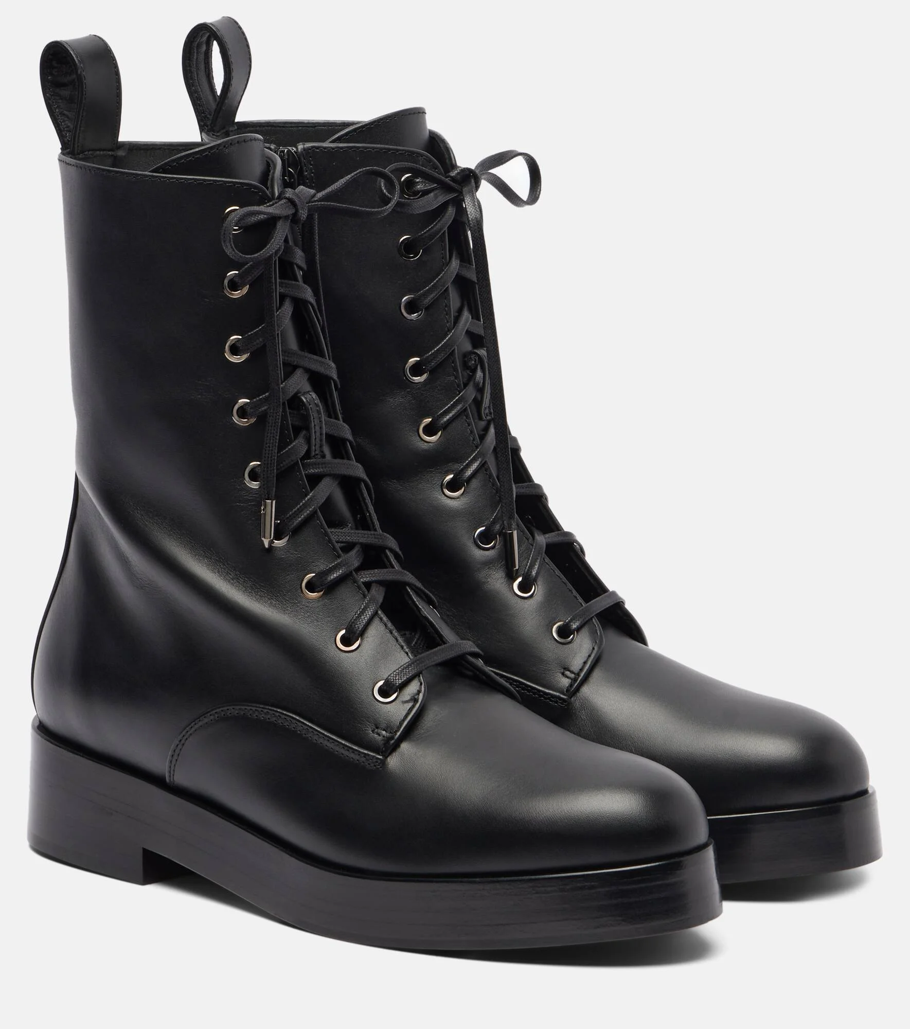 A single Aquazzura pair can include over 30 components, each of which is hand-assembled by skilled artisans. The Ben combat boots are expertly crafted from leather and feature 20mm heels and a classic lace-up silhouette. Product Details - Upper: calf leather - Lining: leather - Sole: leather insole, leather and rubber sole - Toe shape: round toe - Made in Italy - Includes: shoe box, dust bag - Designer color name: Black - Item color: black - Closure: zipped side, lace-up - Item number: P01122000 Size & Fit - True to size - For narrow feet, we recommend trying a half size smaller - European sizes - 3cm-1" platform (size EU 38) - 4cm-1.5" wedge heel (size EU 38)