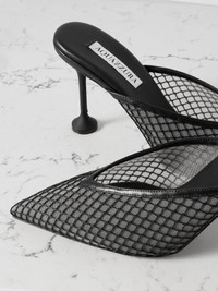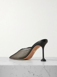 Bisous 85 leather-trimmed mesh point-toe mules Black