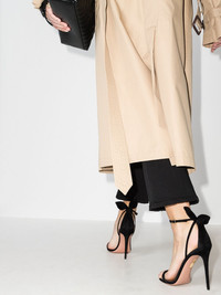Bow Tie 105mm bow sandals Highlights - These black aquazzura bow tie 105 suede sandals are made in italy. they're defined with an upright bow at the back of the ankle, have an open toe, slender straps at the front and secure at the sides with a buckle fastening. 'when you know, you know' rings true when it comes to these aquazzura sandals. as soon as we laid our eyes on them we knew it was true love. that's what happens when you find your - Solemate. Made in Italy Composition Outer: Calf Leather 100% Lining: Calf Leather 100% Sole: Calf Leather 100% SIZE & FIT Model measurements Height 5 ft 10 in(1.77 m) Bust/Chest 32.28 in(82 cm) Hips 36.22 in(92 cm) Waist 24.4 in(62 cm) FittingInformation This piece fits true to size. We recommend you get your regular size Measurement HEEL 4.52 in(11.5 cm) HEIGHT 3.14 in(8 cm) Sole height 0.39 in(1 cm)