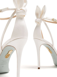 Bow Tie 105mm leather sandals Highlights - White - Calf leather - Satin finish - Bow detailing - Buckle-fastening ankle strap - Leather outsole with gold-tone logo plaque Made in Italy Composition Outer: Satin 100% Lining: Calf Leather 100%, Satin 100% Sole: Calf Leather 100% SIZE & FIT Measurement HEEL 4.13 in(10.5 cm)