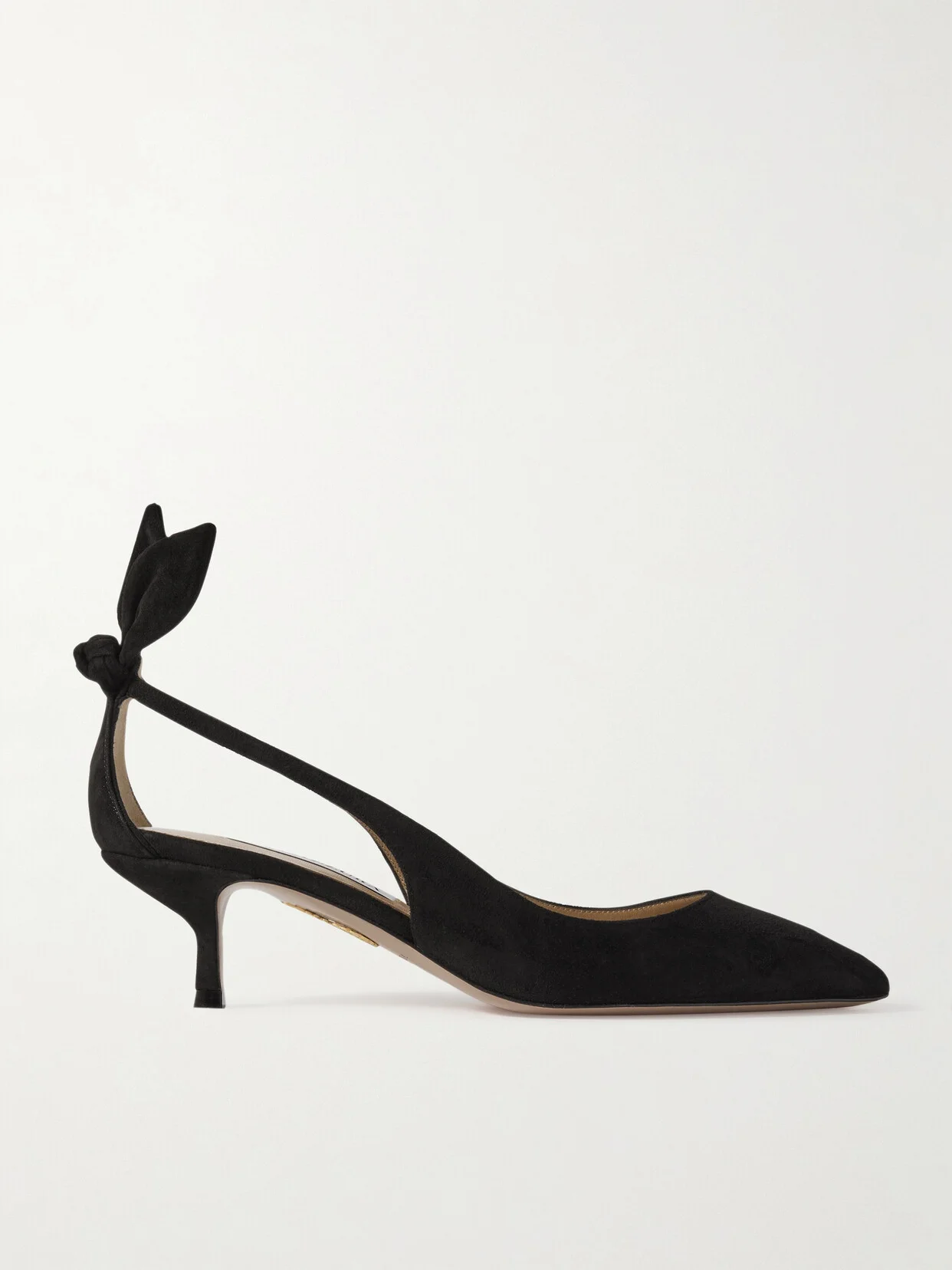 Aquazzura's chic but playful pumps are the perfect choice for formal events. Expertly crafted in Italy from smooth suede, they rest on low 50mm heels and have cutouts at the sides that follow the natural lines of the foot. Style yours with midi hems to showcase the sweet bows.