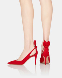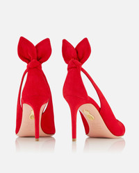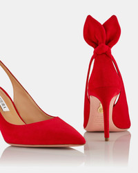 Step out in elegant style in our coveted Deneuve Pumps. Crafted in Italy from velvety suede in vivid lipstick red, this style features a pointed toe, skin-revealing side cutouts, and a flirty bow at the back for an extra touch of panache. The pair is finished on a mid heel for all-day comfort. Covered medium stiletto heel Leather lining Leather insole with 'Aquazzura Firenze' stamped in gold Leather sole with embossed pineapple logo Product: DENMIDP0-SUE-F00 Made in: Italy