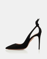 Our Bow Tie Pump is a natural trend-setter, the pair is expertly crafted in Italy from our coveted 'buttery' suede in rich black. The style features a flattering pointed toe, skin-bearing side cutouts at the heel and a flirty upward bow at the back for an extra touch of allure. FITS SLIGHTLY LARGE TO SIZE. Covered stiletto heel Leather lining Padded leather insole Leather sole with gold dipped metal Pineapple logo Product: DENHIGP0-SUE-000 Made in: Italy