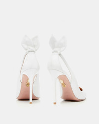 Make elegant strides this season in our Bow Tie Pump. Crafted in Italy from our supple nappa leather in fresh white, the style features a flattering pointed toe, skin-revealing side cutouts and a flirty bow at the back for an extra touch of panache. FITS SLIGHTLY LARGE TO SIZE. Covered stiletto heel Leather lining Padded leather insole Leather sole with gold dipped Pineapple logo Product: DENHIGP0-NAP-FFF Made in: Italy