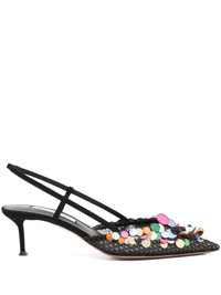 50mm Can Can pumps Highlights - Black - Elasticated slingback strap - Mid sculpted heel - Branded insole - Sequin embellishment Made in Italy Composition Outer: Leather 100%, Fabric 100% Lining: Leather 100%, Polyurethane 100% Sole: Leather 100% SIZE & FIT Measurement HEEL 2.55 in(6.5 cm)
