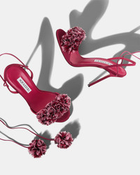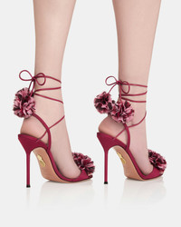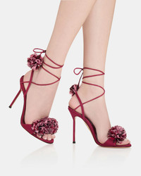 Playfully embellished with ruffled trims across the toes and pom-poms at the end of the ankle ties, these Cherry Kiss Sandals promise to steal the show at any party. They're crafted in Italy from a combination of leather and chiffon in an intense merlot-red hue that adds a sophisticated touch to any ensemble. Ankle ties Stiletto heel Padded leather insole Signature logo detailing Product: CYKHIGS0-CGN-MLT Made in: ITALY