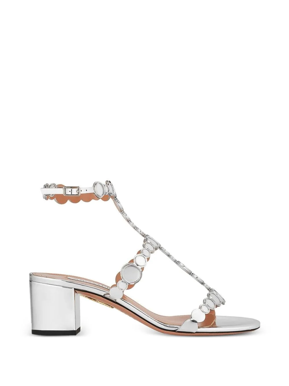 circle-embellished sandals Highlights - Silver - Circle embellishments - Ankle strap - Block heel - T-strap - Scallop-edge detailing Made in Italy Composition Outer: Polyurethane 100% Lining: Goat Skin 100% Sole: Calf Leather 100% SIZE & FIT Measurement HEEL 1.96 in(5 cm)